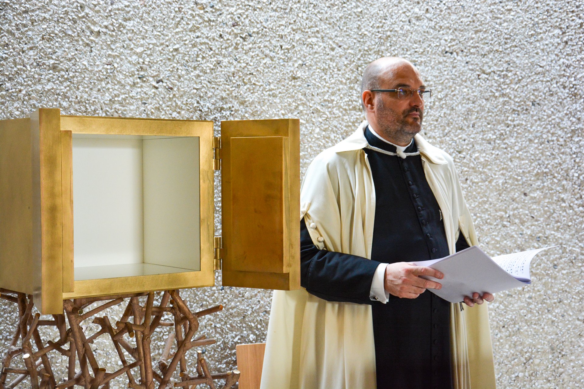 Generalabt P. Frank Bayard segnete den Ambo und den Tabernakel und entzündete nach dem Einsetzen des Allerheiligsten das Ewige Licht. Beeindruckend war die Weihe des Marmoraltars, in dem S.E. der Hochmeister Reliquien der hl. Karmelitin und Mystikerin Maria Magdalena von Pazzi und des seligen Fürstbischofs Johann Nepomuk von Tschiderer einsetzte. Zudem besprengte der Abt den Altar mit Weihwasser, salbte ihn mit Chrisam und verbrannte darauf Weihrauch.